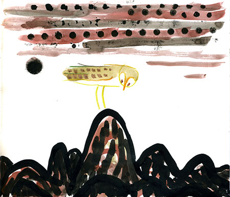 ink, colored pencil, watercolor